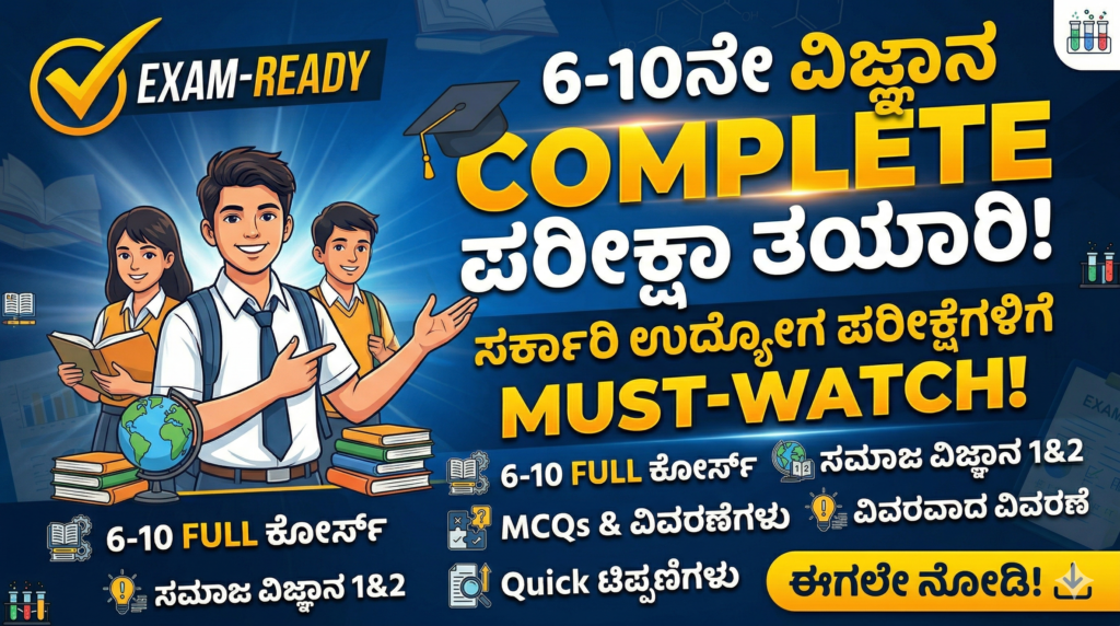 ವಿಜ್ಞಾನ 6 to 10th NotesBy mohammedhasan0259@gmail.com / March 24, 2026 SAMPLE NOTES ಕೆಳಗೆ ಕ್ಲಿಕ್ ಮಾಡಿ ನೋಡಬಹುದು 6 TO 10TH MCQ NOTES 6 ನೇ ತರಗತಿ - ವಿಜ್ಞಾನ - ಭಾಗ 1 ಮತ್ತು 2 ( CLICK HERE ) 7 ನೇ ತರಗತಿ - ವಿಜ್ಞಾನ - ಭಾಗ 1 ಮತ್ತು 2 ( CLICK HERE ) 8 ನೇ ತರಗತಿ - ವಿಜ್ಞಾನ - ಭಾಗ 1 ಮತ್ತು 2 ( CLICK HERE ) 9 ನೇ ತರಗತಿ - ವಿಜ್ಞಾನ - ಭಾಗ 1 ಮತ್ತು 2 ( CLICK HERE ) 10 ನೇ ತರಗತಿ - ವಿಜ್ಞಾನ - ಭಾಗ 1 ಮತ್ತು 2 ( CLICK HERE ) ವಿವರವಾದ ಟಿಪ್ಪಣಿಗಳು / DETAIL NOTES 7 ನೇ ತರಗತಿ - ಸಮಾಜ ವಿಜ್ಞಾನ - ಭಾಗ 1 ಮತ್ತು 2 ( CLICK HERE ) 8 ನೇ ತರಗತಿ - ಸಮಾಜ ವಿಜ್ಞಾನ - ಭಾಗ 1 ಮತ್ತು 2 ( CLICK HERE ) 9 ನೇ ತರಗತಿ - ಸಮಾಜ ವಿಜ್ಞಾನ - ಭಾಗ 1 ಮತ್ತು 2 ( CLICK HERE ) 10 ನೇ ತರಗತಿ - ಸಮಾಜ ವಿಜ್ಞಾನ - ಭಾಗ 1 ಮತ್ತು 2 ( CLICK HERE )